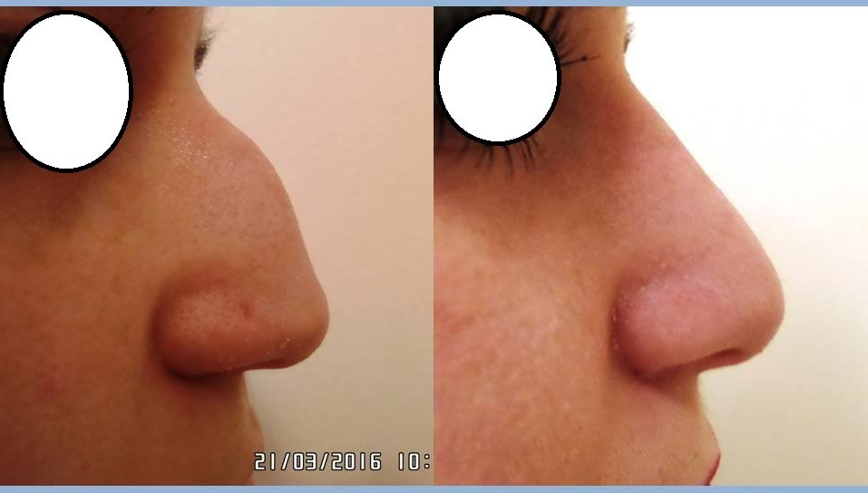 La Rinoplastica e un intervento chirurgico il cui proposito e quello di migliorare l’aspetto estetico del naso e quindi del volto. Il miglioramento si ottiene mediante la riduzione ed il rimodellamento dello scheletro cartilagineo ed osseo. Il grado di miglioramento varia da individuo ad individuo ed e influenzato dalla qualità della cute e dalle dimensioni dello scheletro sottostante. L'attività fisica dovrà subire delle limitazioni per due settimane al fine di evitare gonfiori o sensazioni fastidiose. La guida potrà essere ripresa dopo una settimana.